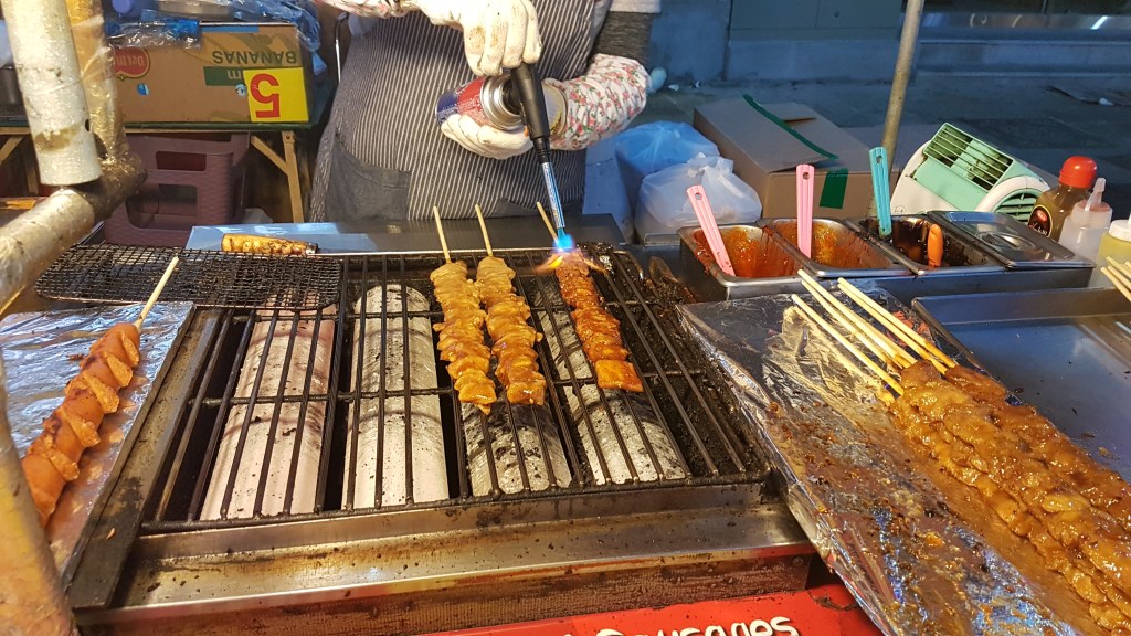 Having taken a red-eye from Hong Kong, I napped for half of the first day – I told you it was going to be a relaxing trip! I seemed to have selected a haunted AirBnB, but that’s for another blog post. That night, we went out and dinner consisted all of street food from food stalls all around BIFF Square. And since we had some extra time, we went up the Busan Tower. It only cost us $8 CAD to go up but you get what you pay for. The view was nice but the windows were a bit dirty (lol) and it was a relatively small space. HOWEVER, to our wonderful surprise, when we were leaving, we walked through a small exhibition hall with a projection wall and trick art.